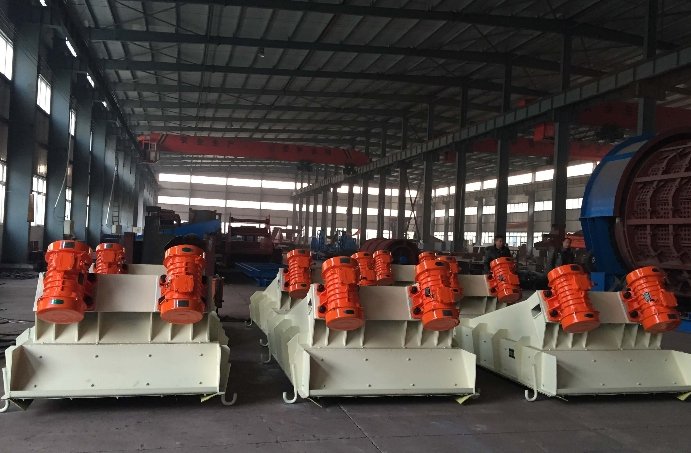 振动给料机(喂料机)在生产流程中,可把块状、颗粒状物料从贮料仓中均匀、定时、连续地给到受料装置中去,给料机、振动给料机在砂石生产线中可为破碎机械连续均匀地喂料,并对物料进行粗筛分,广泛用于冶金、煤矿、选矿、建材、化工、磨料等行业的破碎、筛分联合设备中。